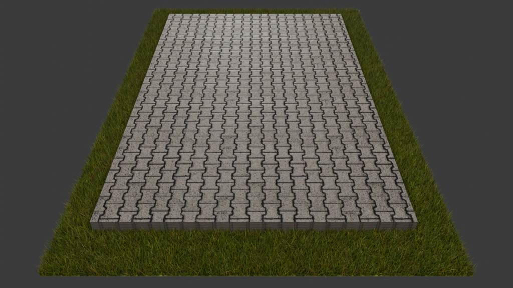 Podłoże przygotowane w formie kostki brukowej, pod całą powierzchnią konstrukcji stalowej.