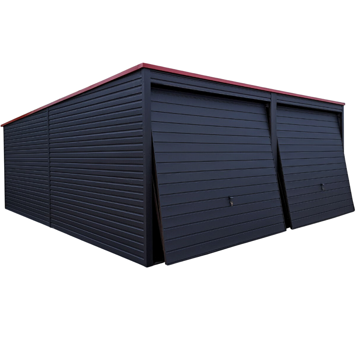 | Pokrycie | kolor garażu 9005 mat, na garażu trapez blachy poziomy 9 cm |